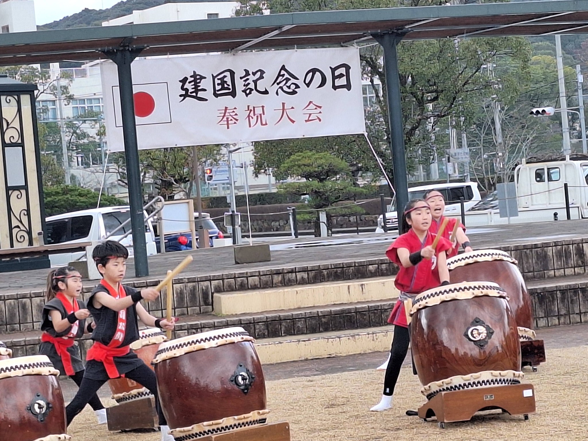 市民の皆様多数参加されるなか、奉祝式典からアトラクションで錦城会による詩吟、サンタの家保育園児による可愛い太鼓演奏で盛り上がりました。